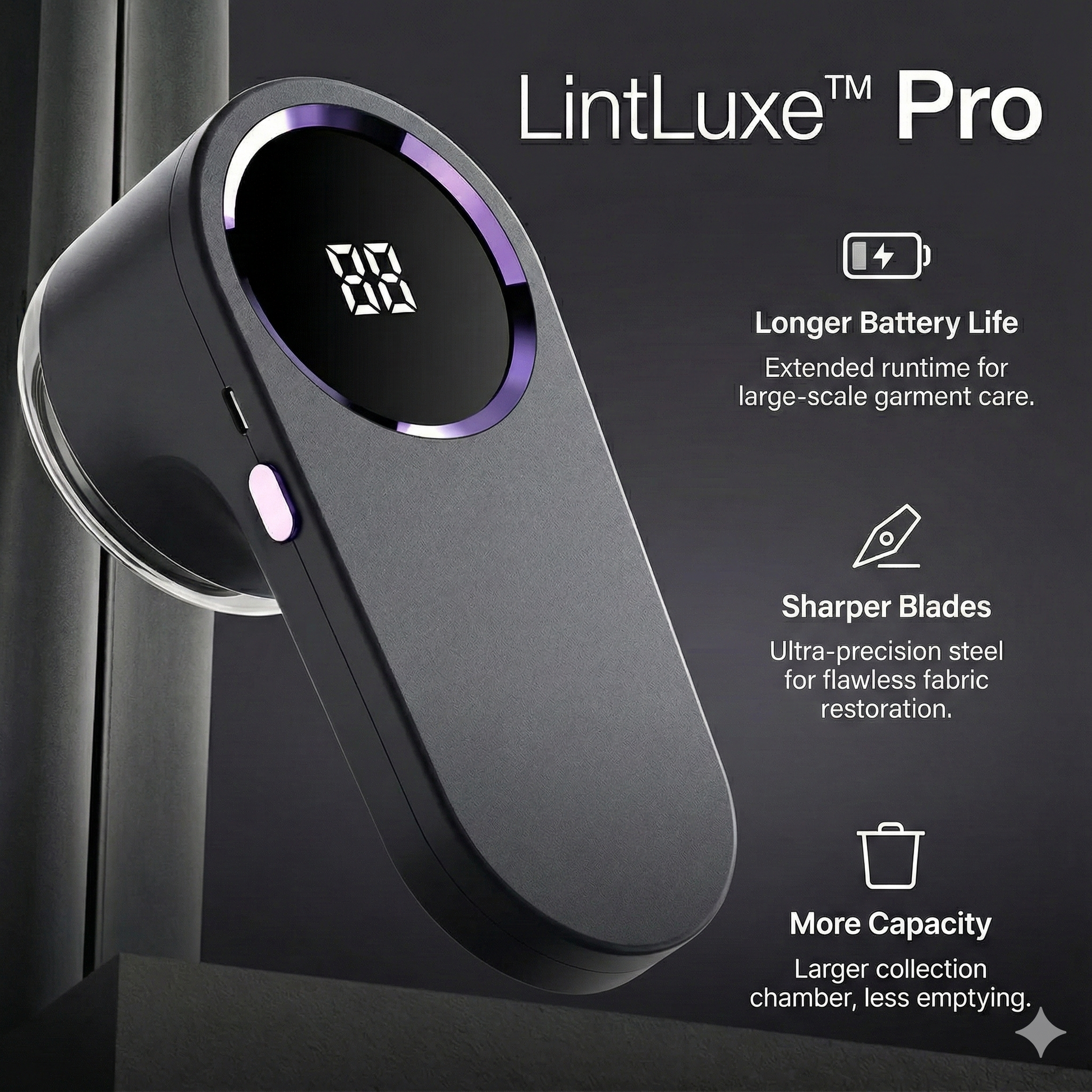 LintLuxe restores clothing and home fabrics to a smooth, polished finish in seconds, helping you extend the life of your wardrobe and keep every piece looking fresh.